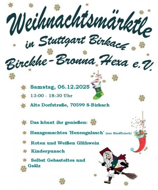 allo liebe Weihnachtsliebhaber, Hästräger, Guggamusiken, Elfen, Muttis, Vatis und natürlich auch Kinder, am Samstag, den 06.12.2025 findet in Stuttgart Birkach (70599) der Weihnachtsmarkt statt. Klein aber fein! In jedem Fall familiär und gemütlich. Stuttgart BirkachWeiterlesen…
