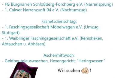 Hallo! Du hast Lust uns kennenzulernen? Du magst Teil unserer Zunft sein? Du wolltest schon immer Hexe werden? Du liebst die schwäbisch-alemannische Fasnet so wie wir? Du hast viele Fragen und bist neugierig? Ob aktiv,Weiterlesen…