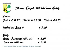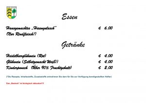 Wir Hexen aus Birkach bieten Rinder-Guschlasch, roten und weißen Glühwein und auch Kinderpunsch an. Dazu noch Kleinigkeiten hergestellt in liebevoller Handarbeit. Zudem noch selbst gemachtes Gsälz.