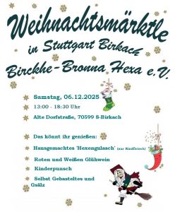 am Samstag, den 06.12.2025 findet in Stuttgart Birkach (70599) der Weihnachtsmarkt statt. Klein aber fein!